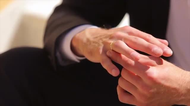 Hands nad chest of bride in wedding dress, with wedding pedicure rolling out a wedding invitation or menu while staying on the backround of the window. Close up. Sunlight.