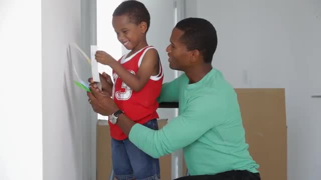 African American military father walking with wife and son