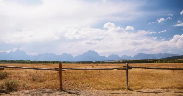 8k Time Lapse at Mormon Row in Grand Teton National Park on a partly cloudy day with motion.