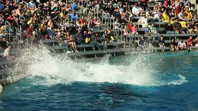 629722 - 1969: crowd watching an exciting aquatic sea life show YOSEMITE, CALIFORNIA