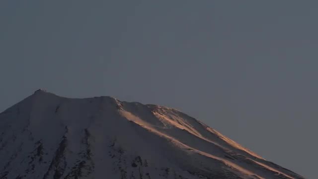 Close up view of Mount Fuji summit covered in snow and clear sky, Shizuoka Prefecture, Japan