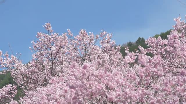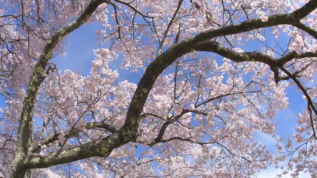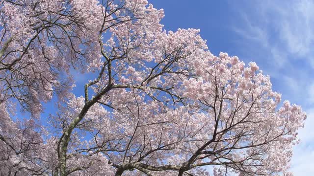 > Timelapse close up shot of clouds moving over trees, Shiga Prefecture, Japan