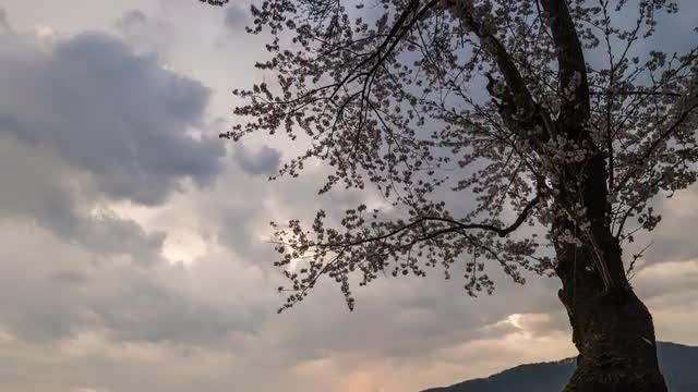 Timelapse of cherry blossoms in full bloom at sunrise at lake Biwa, Shiga Prefecture, Japan