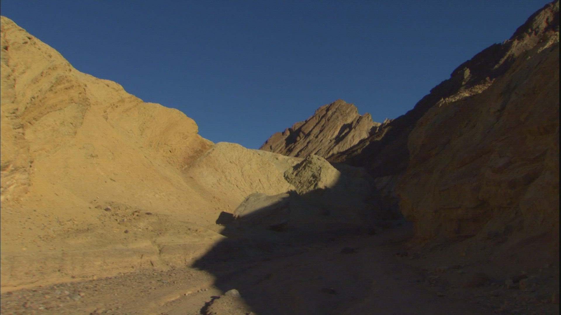 Death Valley Desert, Pan, pan across valley, sunset, area, low view, wide, infinite focus, video,