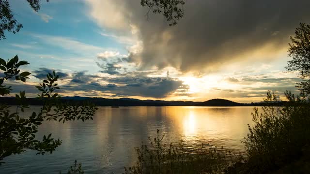 Time lapse of colorful sunset moving on slider at lake Coeur d'Alene