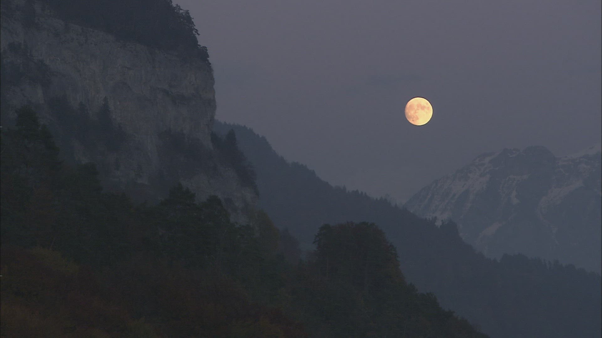 > Full moon rising in the sky