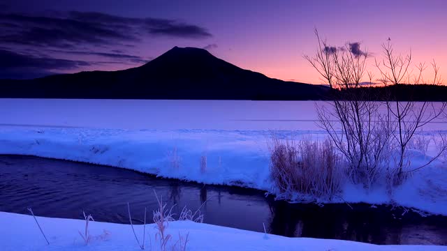 Snow at Kushiro River, Hokkaido, Japan