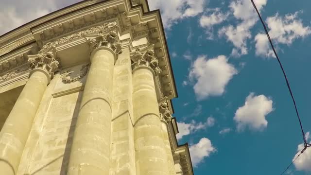 > urban building lights background. clouds moving over city skyline at night sky