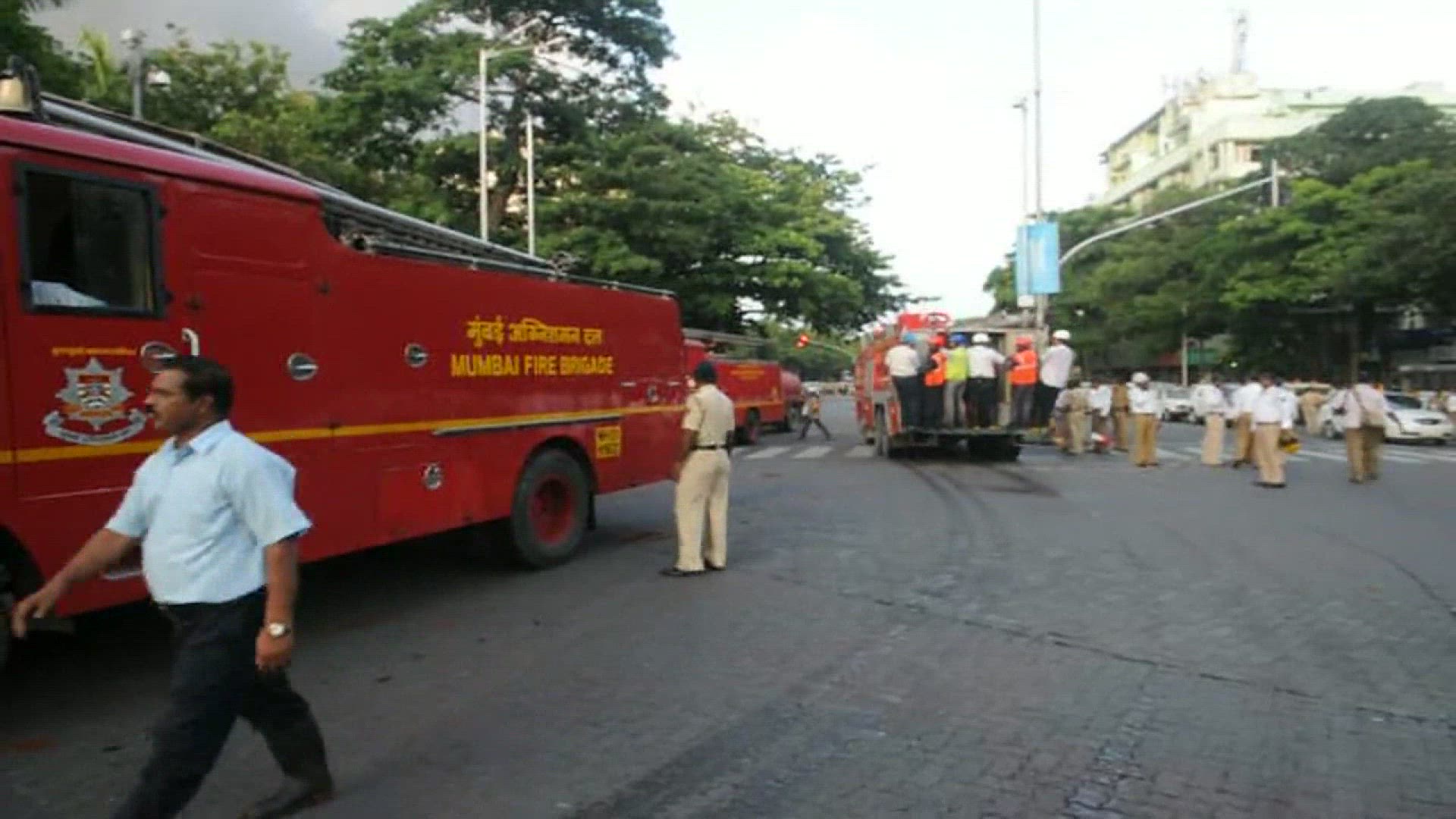 > FDNY fire department truck getting emergency call in midtown manhattan at night