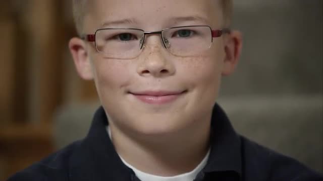 323163 - Slow motion of young boy standing and smiling.