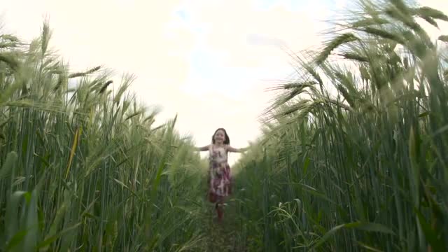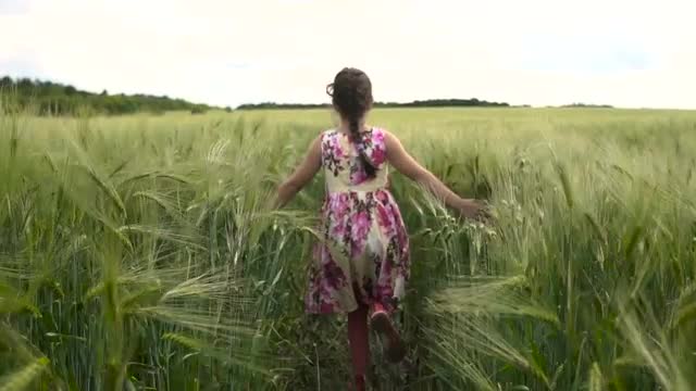 Happy Boy Running On Field