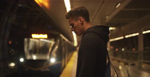 786575 - Young man boards train at night