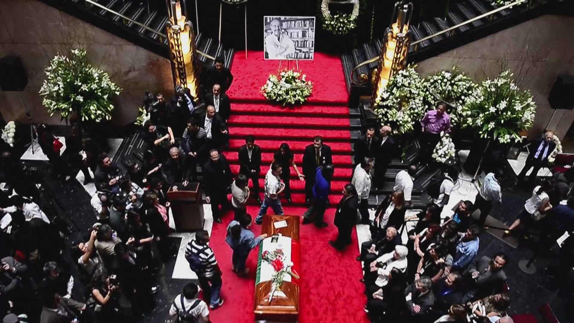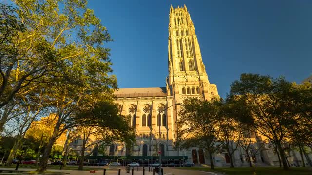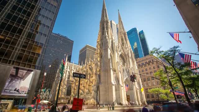 The entrance to a beautiful Mexican church, very folkloric and colorful. The blue sky in the background contrasts and brings out the strong yellows from the churches and the white clouds give it a sense of time passing. People can be seen on the timelapse as well.