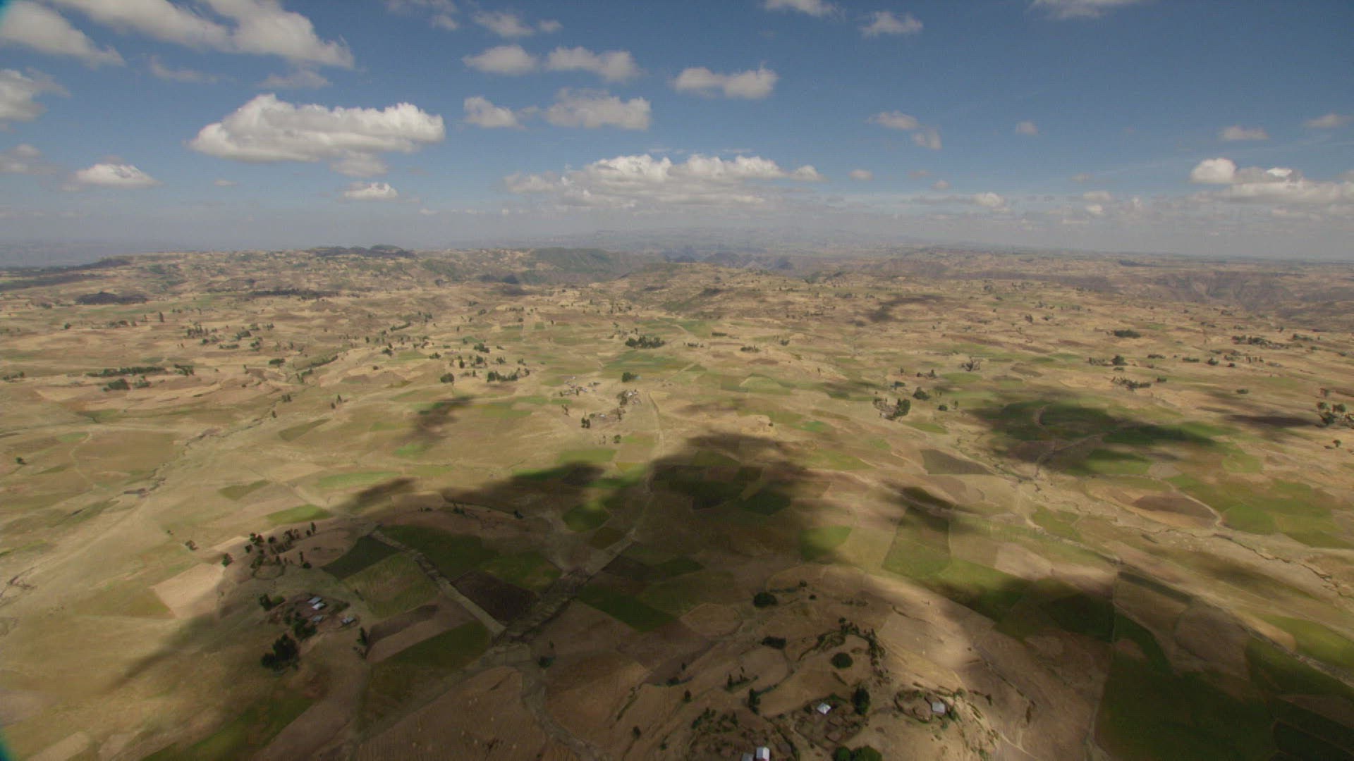 Cloud shadows over green plains in Hawaii