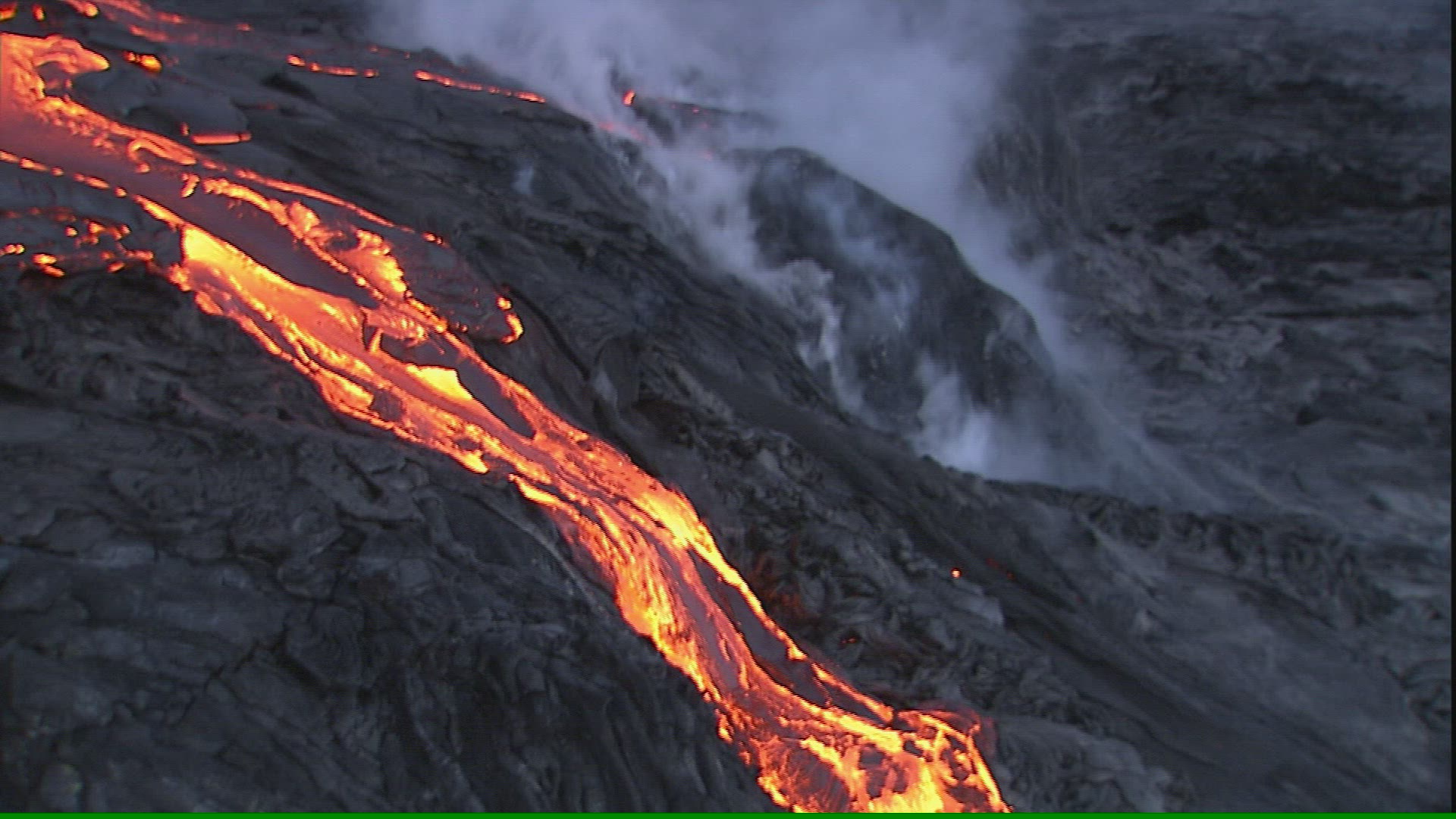 > Aerial of lava in Hawaii