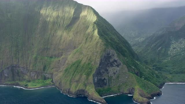 1120916 - Aerial shot over the mountain revealing Molokai Sea Cliffs
