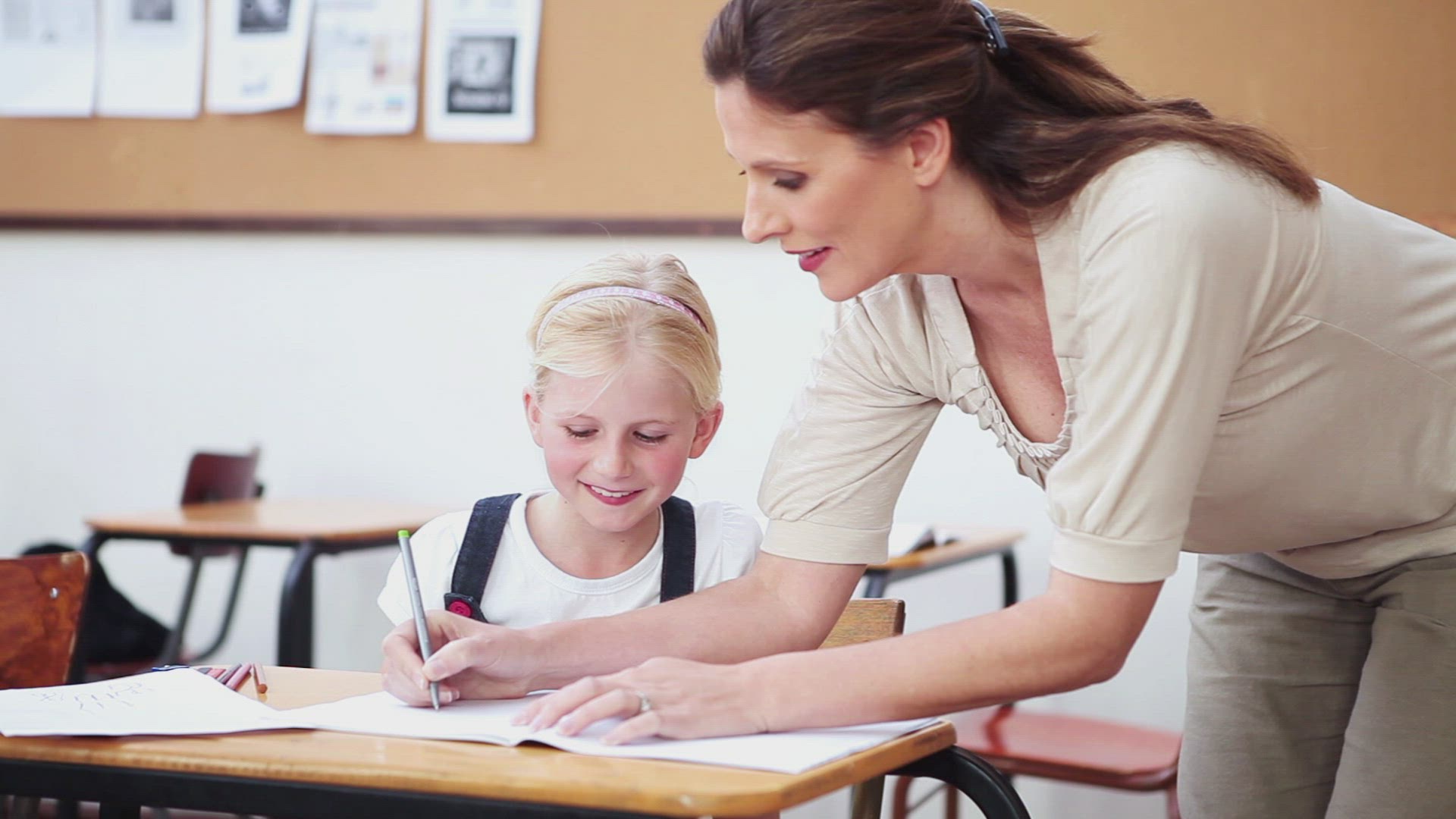 a Girl is Sitting at a Table Doing Homework. he Does His Homework at the Writing Desk. Writes in a Notebook. Writes the Text From the Book to the Notebook. he Looks Through the Book. Looking For a Word in the Dictionary, Writes.