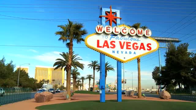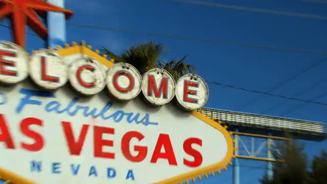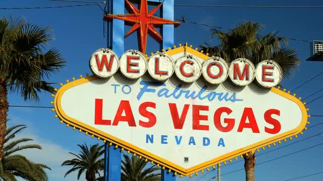Las Vegas, Nevada - April 2017: Welcome sign at the start of the famous Las Vegas Strip. Welcome to Fabulous Las Vegas sign by day, Nevada. Welcome to Las Vegas sign on a bright sunny day closeup.