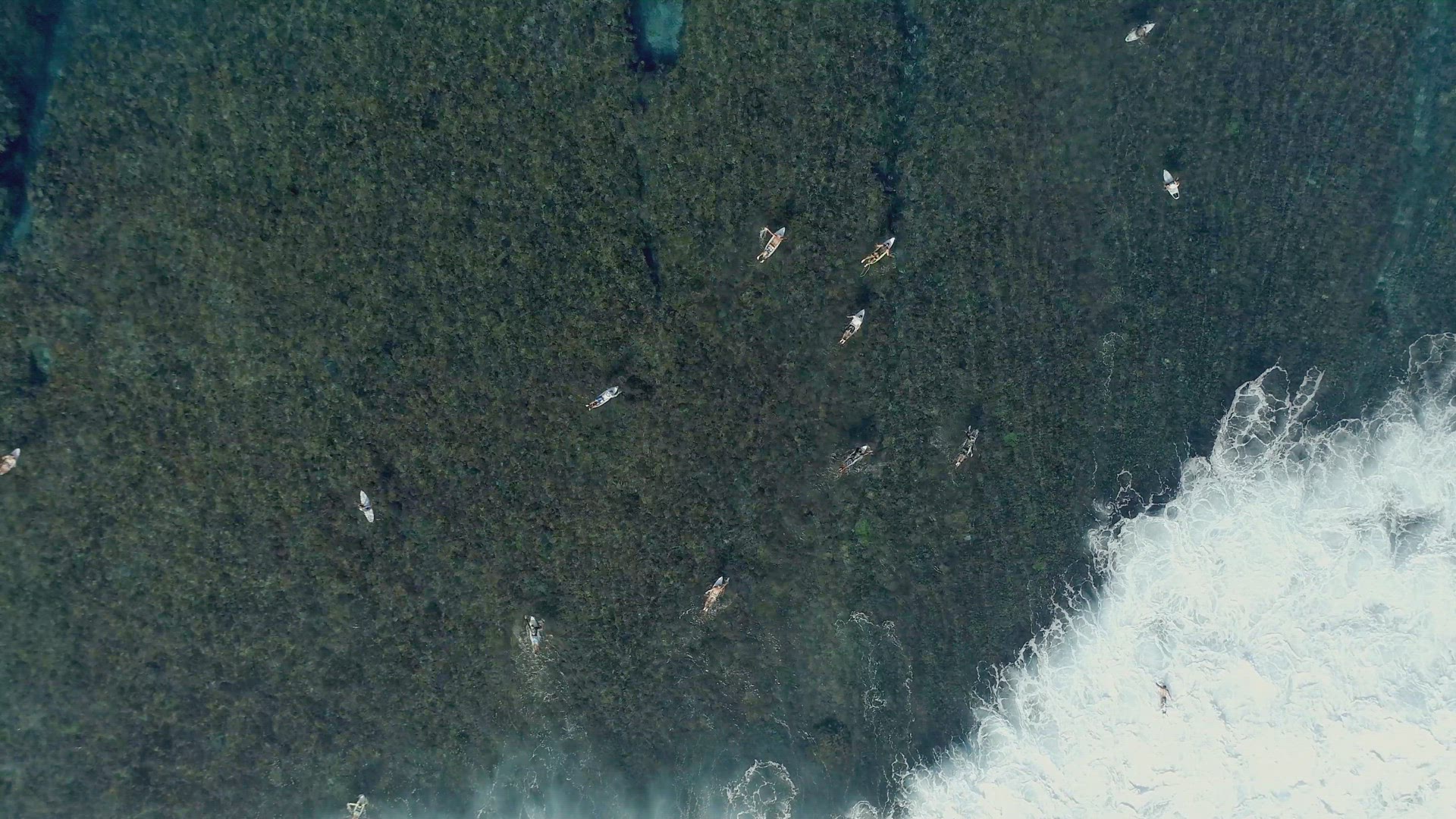 2243897 - Surfers in the Ocean Catching Waves from a Bird's Eye View