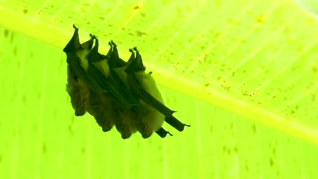 793237 - Slow tilt up on rainforest leaves near Kompia, close