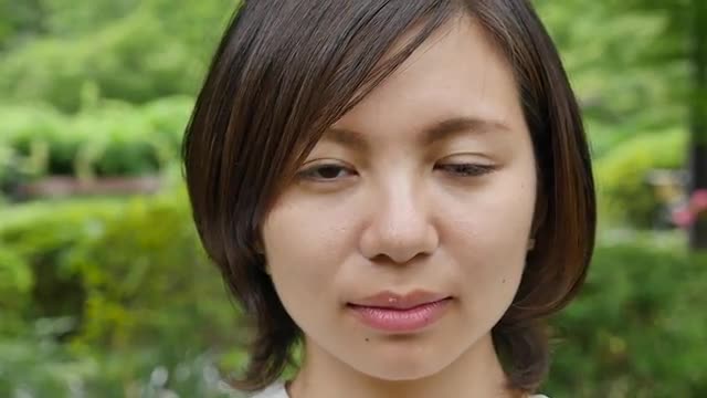 > Portrait of Japanese high school student in a city park, Tokyo, Japan