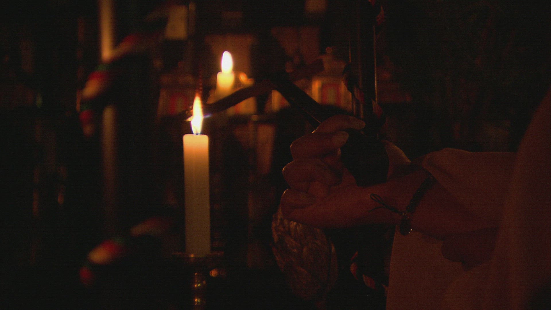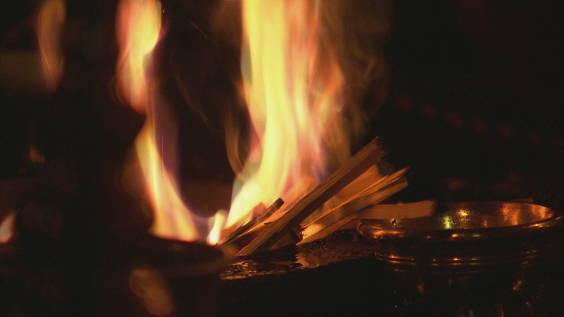 280801 - Close up of Incense Sticks Burning in Giant Pot in Front of Buddhist Temple