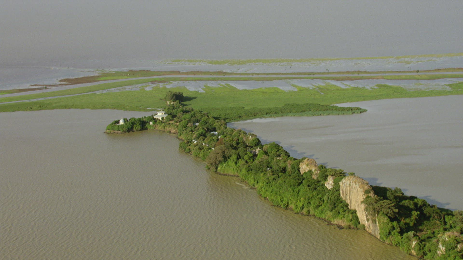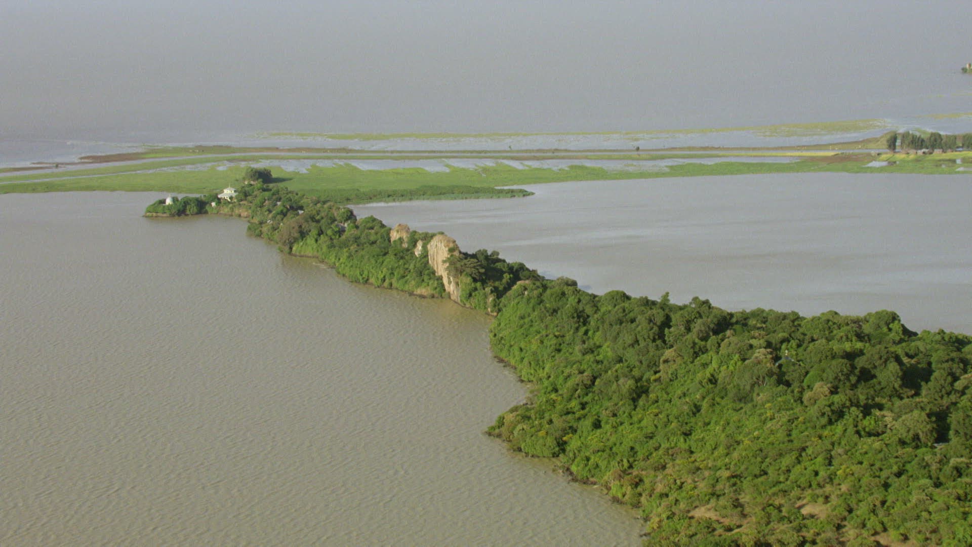 Sunset & tree next to lake in the Rift Valley, Ethiopia.