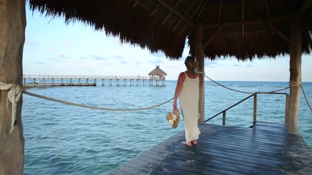 798650 - Side shot of Woman Walking on Beach