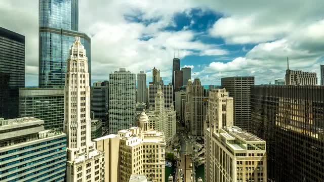 688072 - Areal view of Chicago skyline time lapse