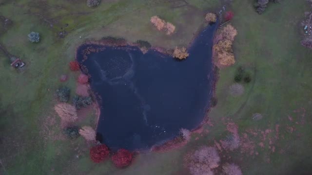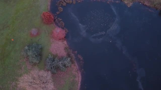 1130199 - Green lane and the frozen lake with the ducks aerial view
