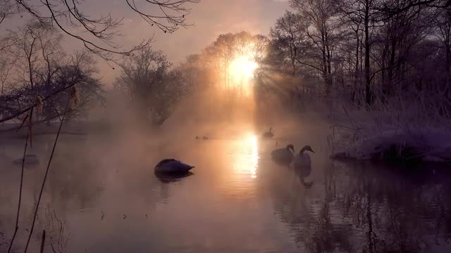 774309 - Ducks in a lake at morning, Hokkaido, Japan