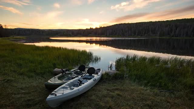 Time lapse of two kayaks lying by Lyman Lake at sunset