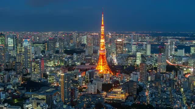 > Day to night time lapse of Tokyo Tower at night, Tokyo, Japan,