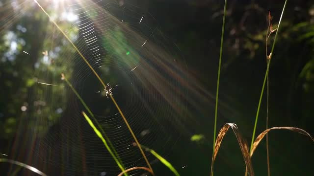 > Spider web with sun beams