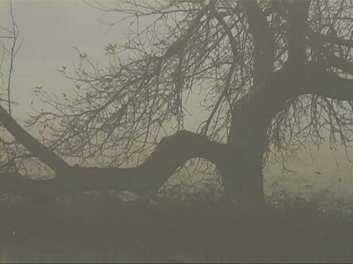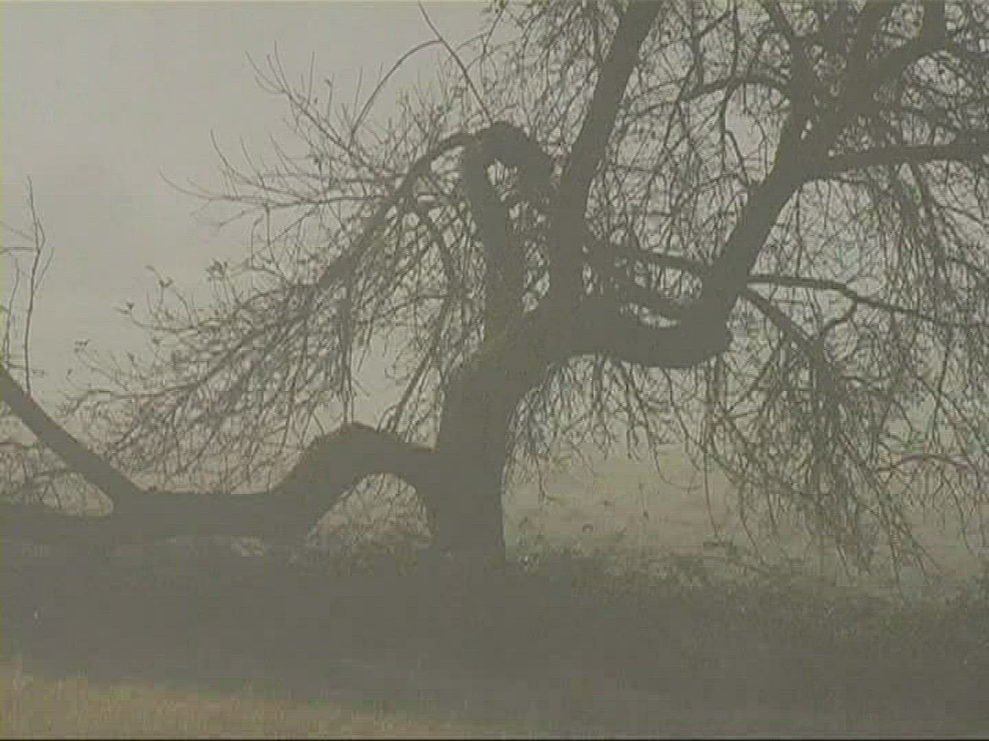 Layer of pine tree forest fading in the distance of the smokey sky.