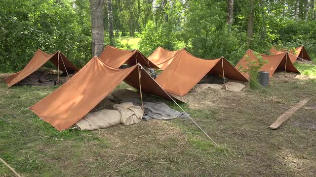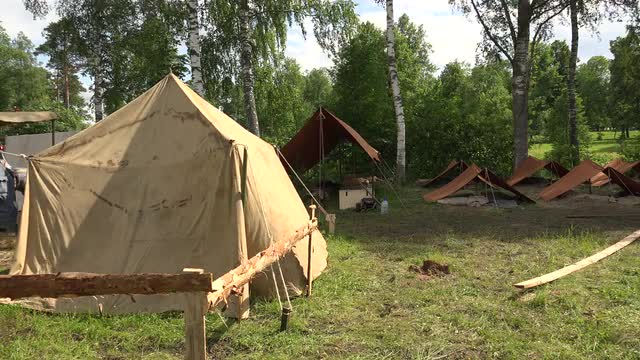 806696 - Two men packing up their camping gear on the back of their pickup truck