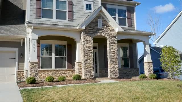 Push in establishing shot of a modern generic suburban middle class home house or mansion with half moon near roof