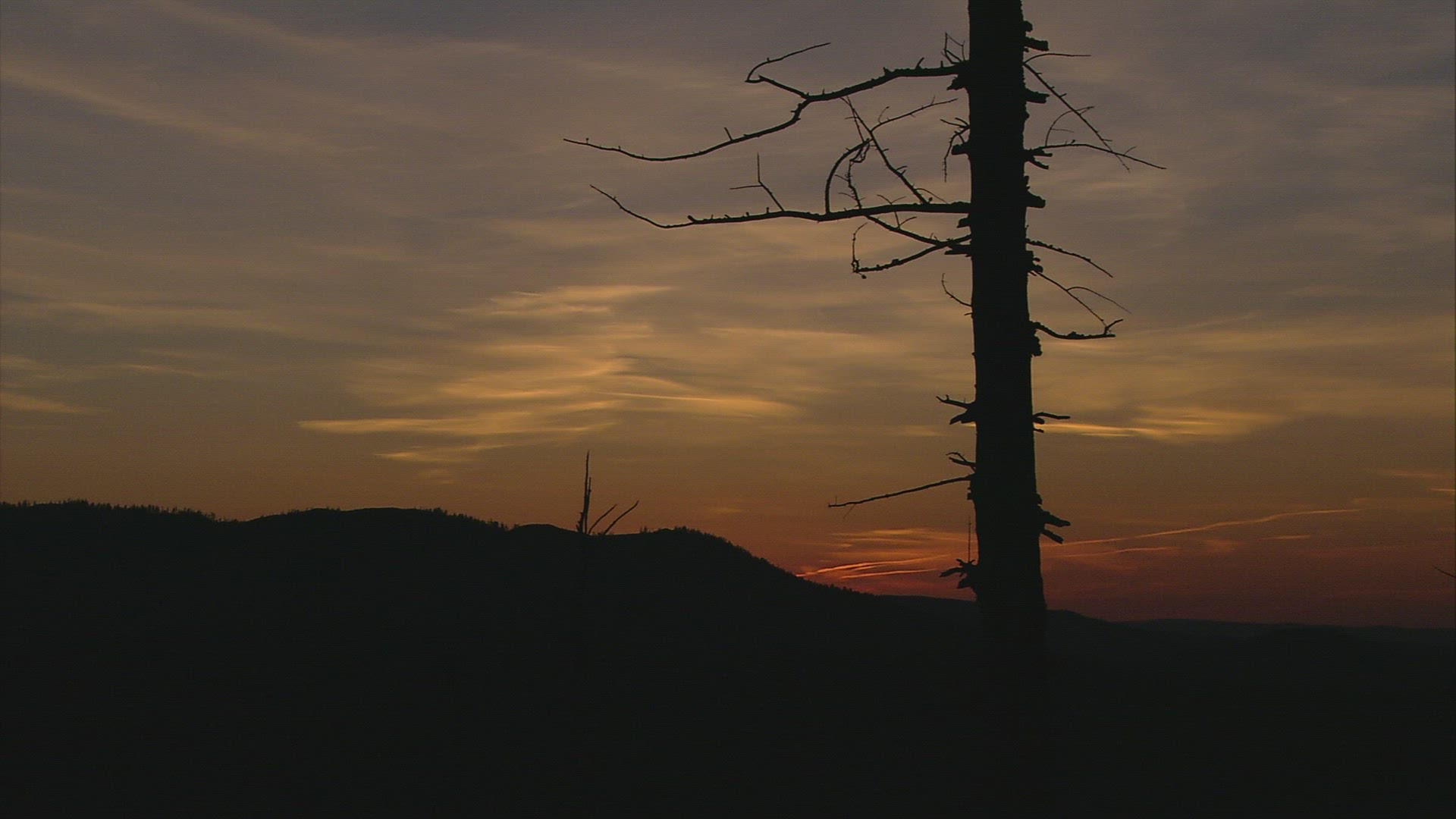 Time lapse of Northern Lights viewed through pine trees in West Yellowstone.