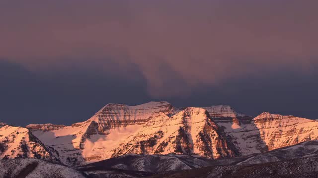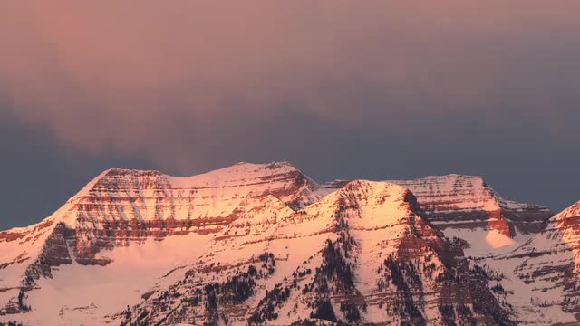 Dolly shot of sunrise from the top of Mt. Yamnuska, Alberta. Hikers moving through frame.