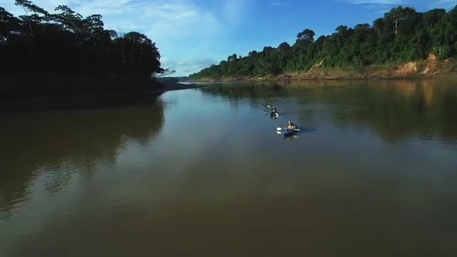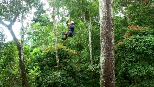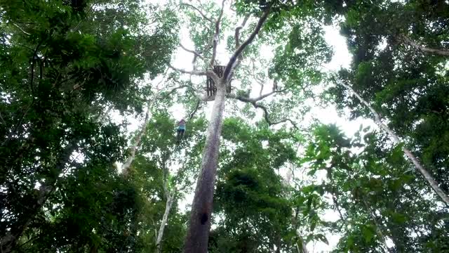 Person Climbing Rainforest Trees, low wide pan, 4K