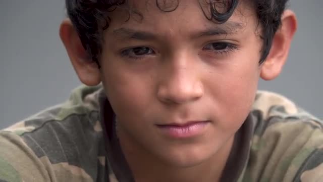 > Close shot on young boy's pensive face