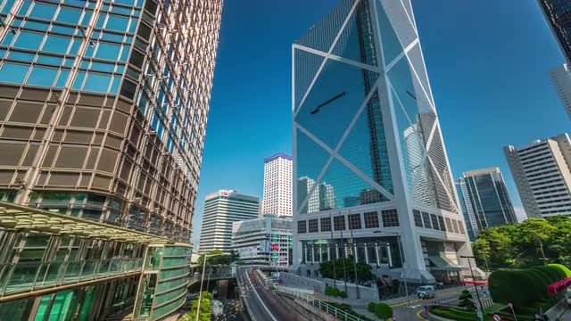 612963 - sunny day bank of china block 4k time lapse from hong kong city