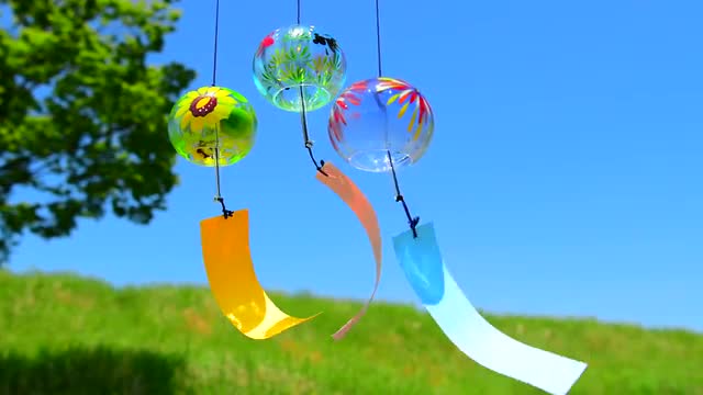 > Wind chimes fluttering in the wind
