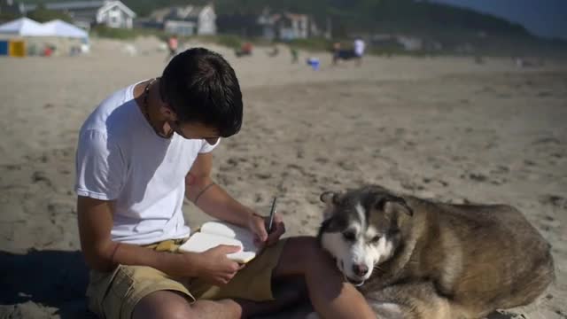 Close up of an adorable small young kitten on her owner's shoulder outside in slow motion