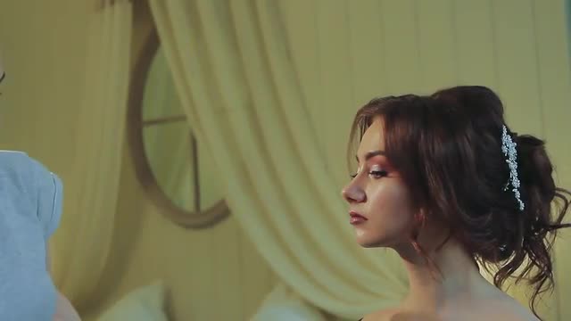 Hairdresser Prepares Bride's Hair For the Wedding. Girl Sits Not Moving and Does Not Interfere With Stylist to Work.