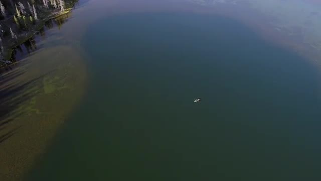 Slow motion of moving river water and drops landing from a single kayak paddle dipping in and out of the water as the sunset reflects against the river and then pan up to a single man who is paddling gently in a kayak in a serene and peaceful image.
