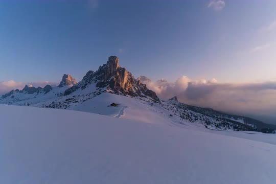 First light on the mountains at Bow lake, Alberta, Canada