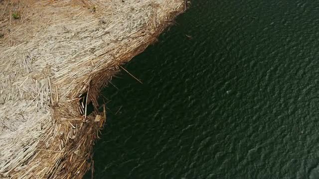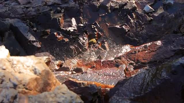 Rocky shore of lake in the mountains on a cloudy day