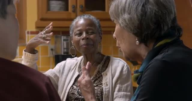 Hand held of a group of people enjoying their dinner at a celebration