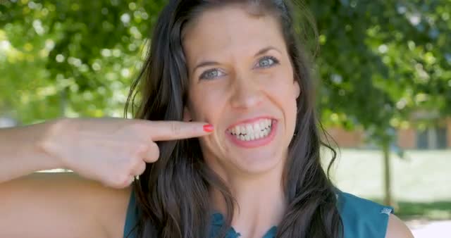 > Portrait of an attractive young woman smiling and giving the thumbs up